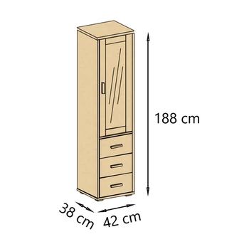 Adél fenyő 1 vitrines ajtós 3fiókos szekrény 42x188x38 cm